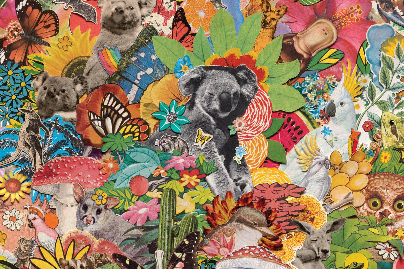 Introducing a circular puzzle drawing on Australiana, by collage artist extraordinaire, Maximillian Malone. Taking his imagery from vintage books, Max takes collage to a whole new level, making it an art form to rival all others. His pieces have a sense of the psychedelic, a sense of nostalgia and at times humour. Interestingly, max will often take his creations apart after assembly, filing each image away for future use. This makes each piece extra special, as it exists only as a photograph (... And a puzzle...) As its pieces will ultimately morph into a new work. Once assembled puzzle diameter is 67.5Cm.