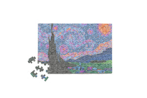 By Artist Gregg "Viz" Visintainer “A Night to Remember” was Gregg's way to learn about Vincent Van Gogh and honor his painting, “The Starry Night”. This piece tells the story and history of Van Gogh by hiding everything about him inside of this artwork. You will also find many of his paintings written throughout the sky. Each puzzle varies slightly but hidden in each print look closely and you may find: HIDDEN PICTURES: A painting pallet, pipe, ear, money sign, baby, cross, pen, pills, sunflower, revolver and a Van Gogh self portrait. HIDDEN WORDS: The Hague, Theo, Vincent, Van Gogh, 37, pills, March 30 1853, July 29 1890, Netherlands, Amsterdam, England, Dutch, Paris, London, Arles, The Sower, Irises, At Eternity's Gate, The Old Mill, The Potato Eaters, The Starry Night and more.