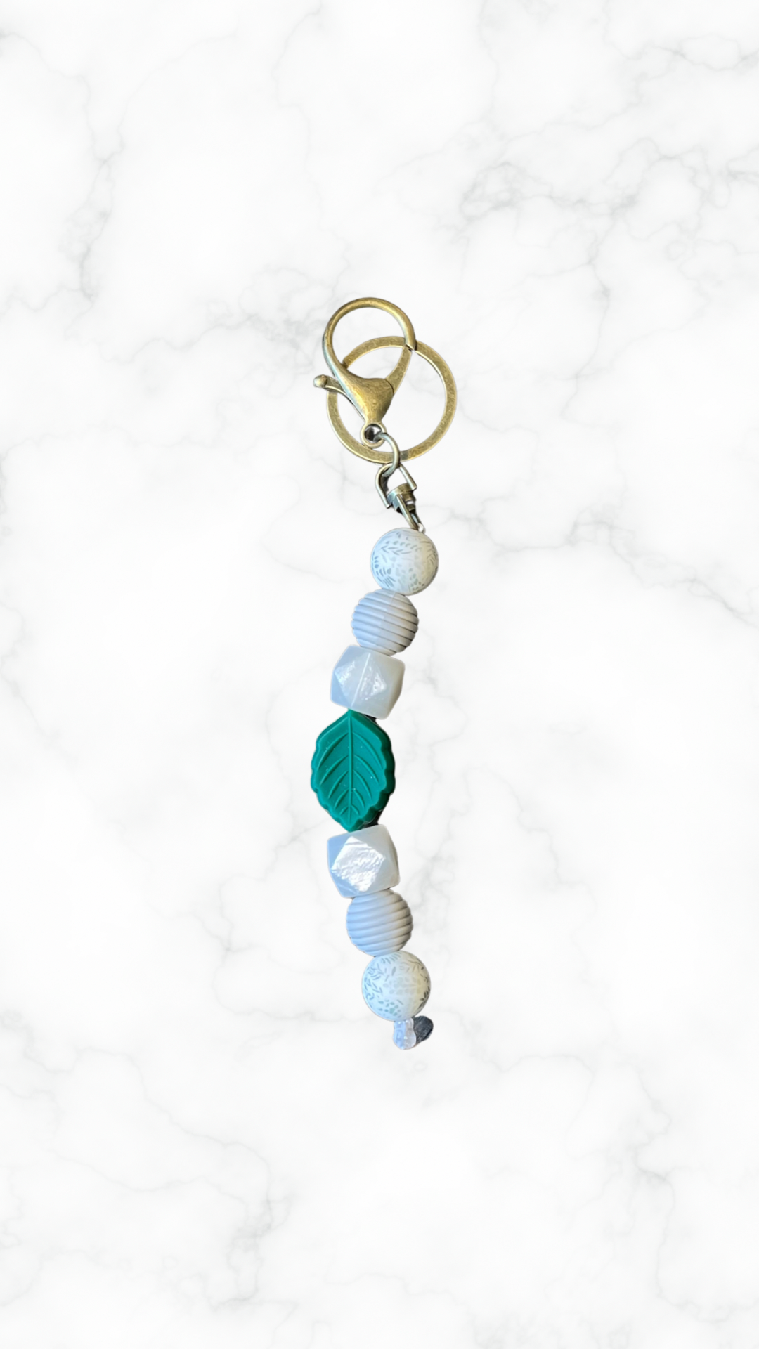 Made with 2 beautiful eucalyptus pattern silicone beads on each end, as well as an exceptionally-sensory-friendly birch leaf focal bead in the middle, these keychains are subtle, sophisticated, stylish, and so much fun to fidget with!
