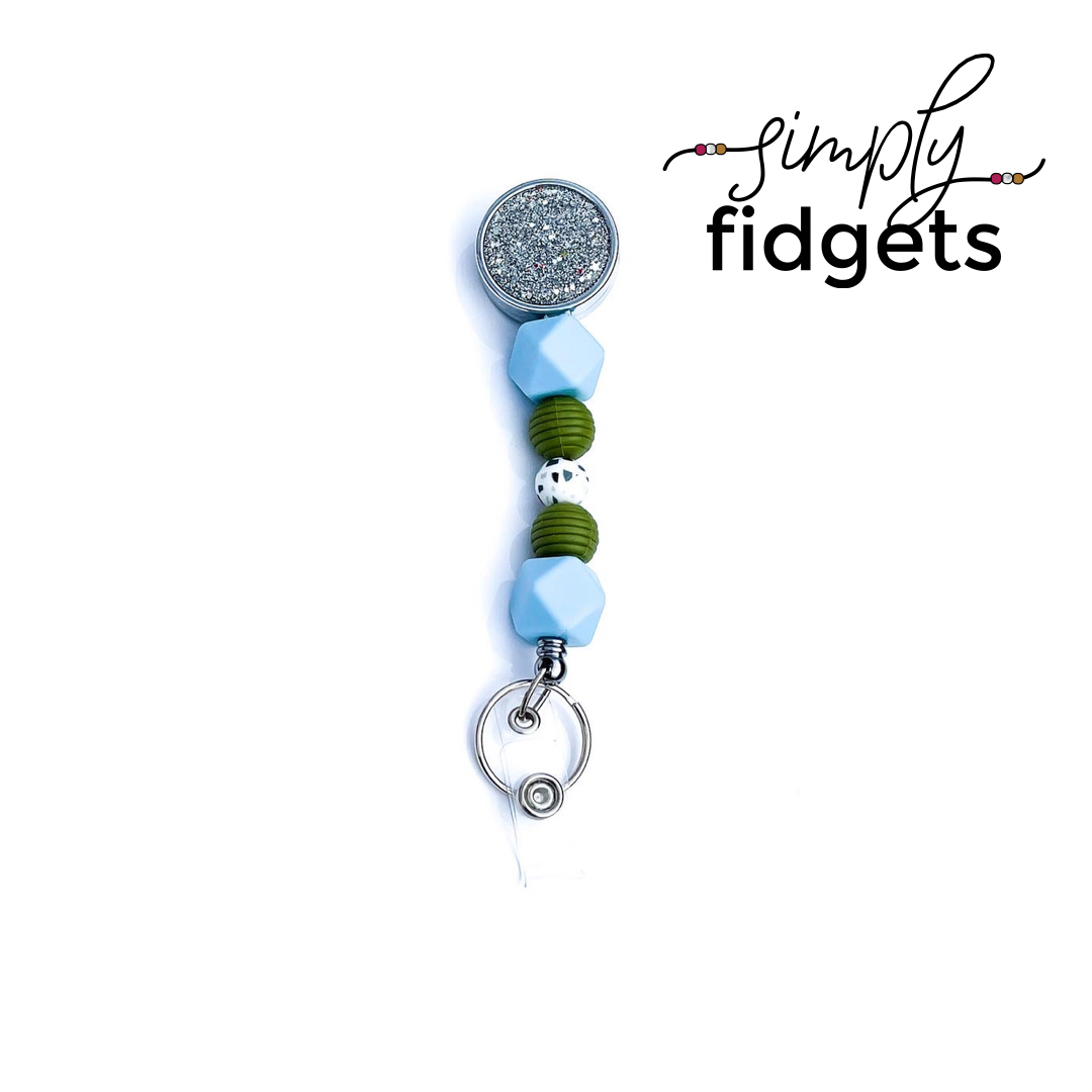 Blue and Green Sensory Beaded Badge Reel Fidget