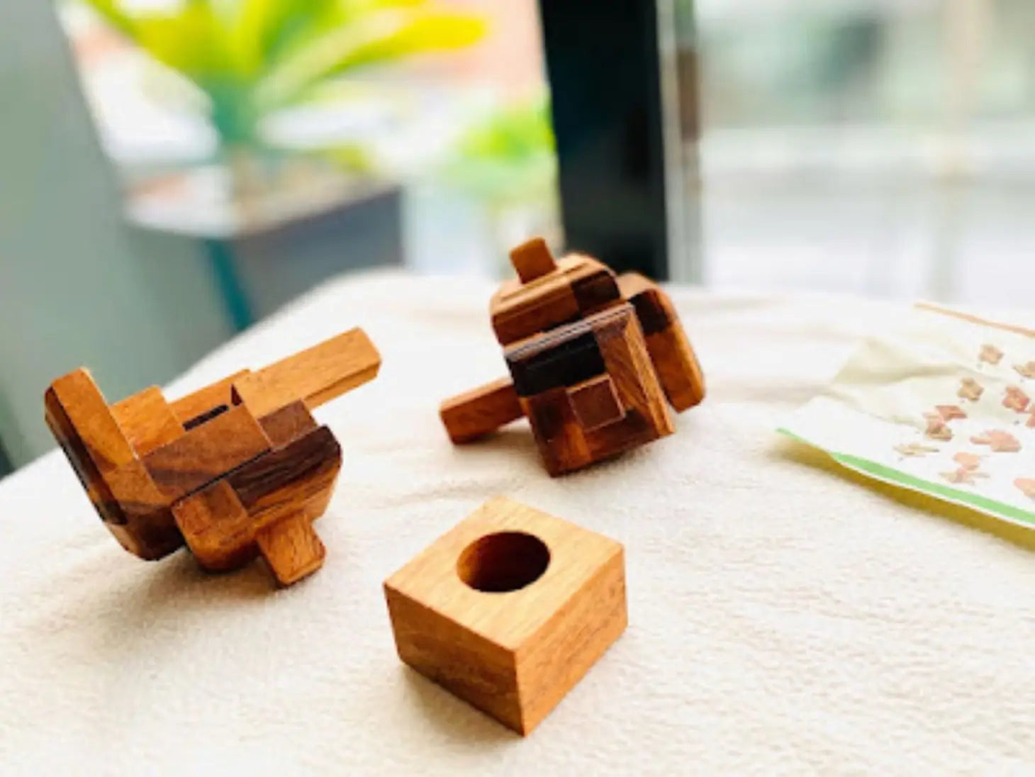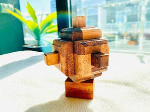 The Satellite is a large, beautifully created by hand and a unique interlocking wooden puzzle. Consisting of 6 pieces that interlock in an unusual way to create this great puzzle. Take the pieces apart and then try get the puzzle back to together.
