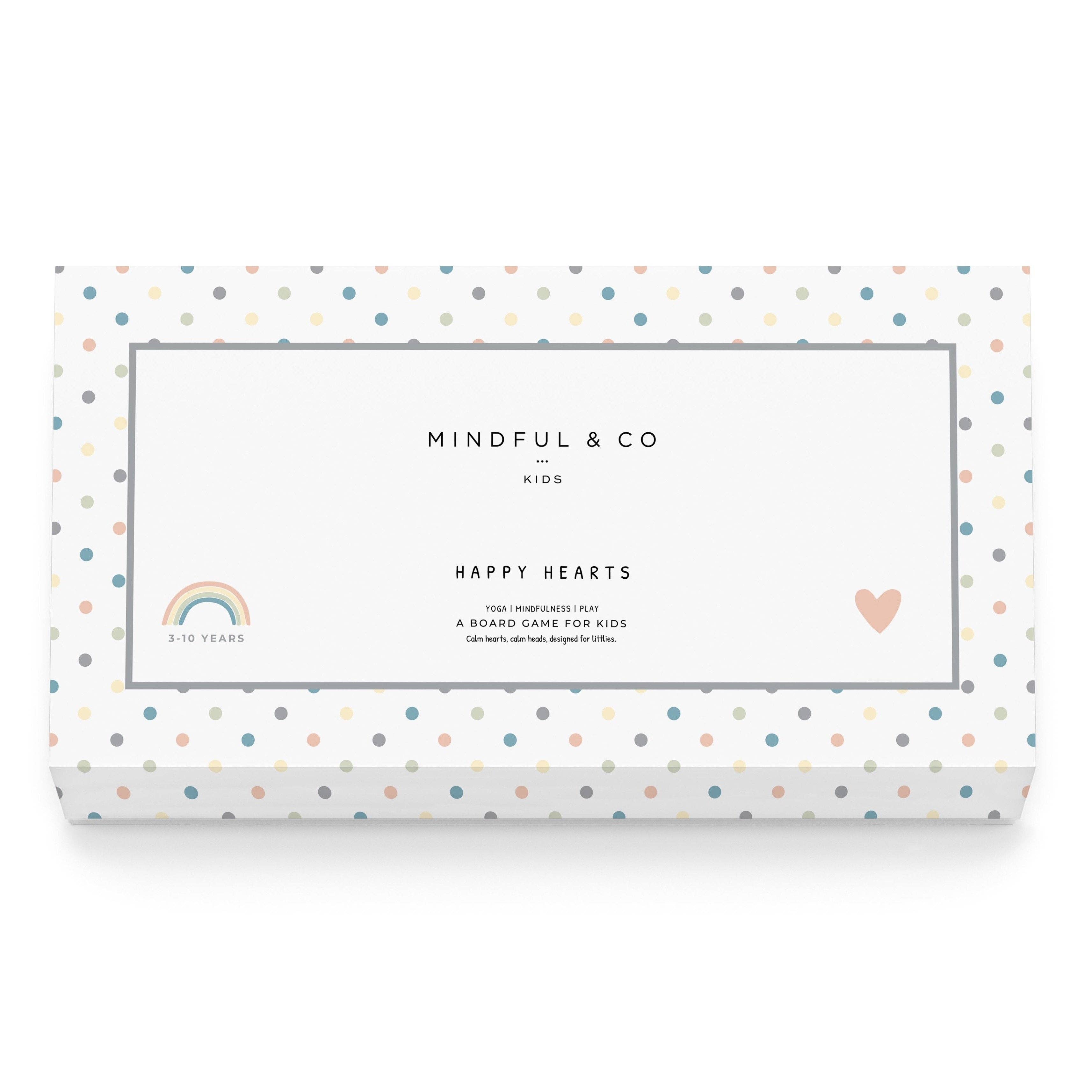 Happy Hearts Board Game weaves science-backed mindfulness techniques - like gratitude and body awareness with yoga and breathing - into a lovingly made, hand-illustrated board game. This board game is designed to develop a growth mindset, ignite laughter and bring joy to playtime. Our Happy Hearts Board Game is a loving blend of joy, science, and healthy brain training. In the box, you’ll find: 1 hand-illustrated game board, 1 dice, 4 player tokens, a how-to-play information card and 30 beautifully crafted Happy Cards.