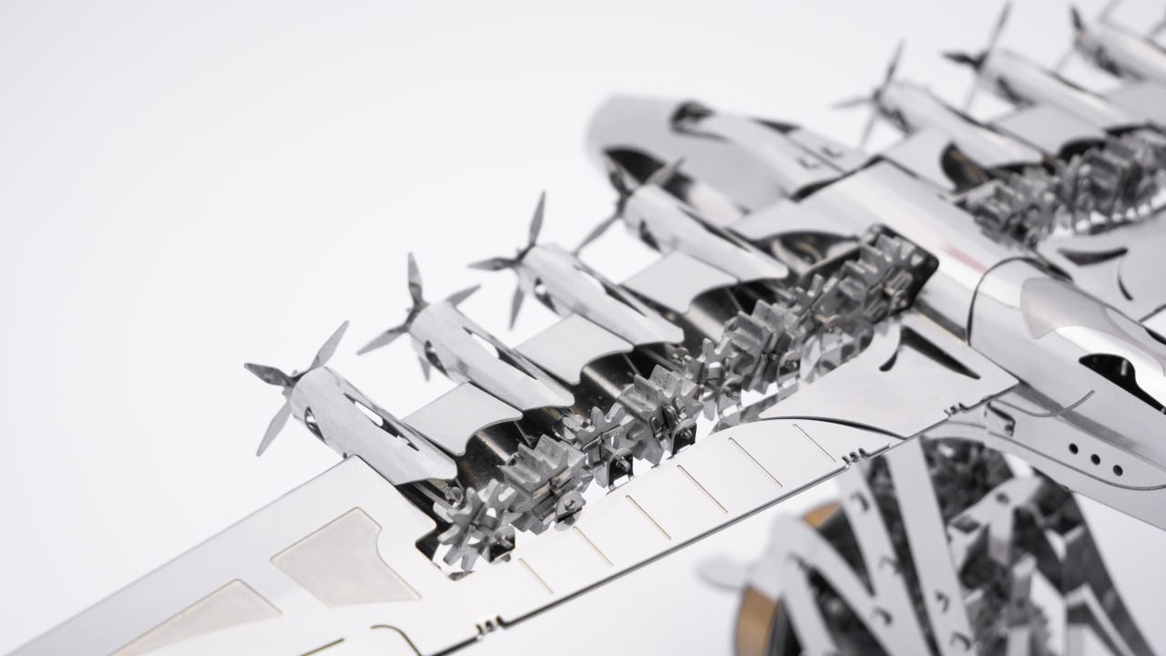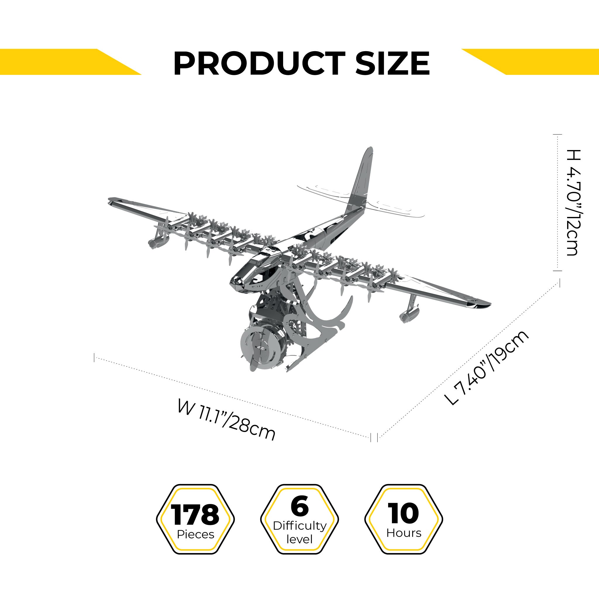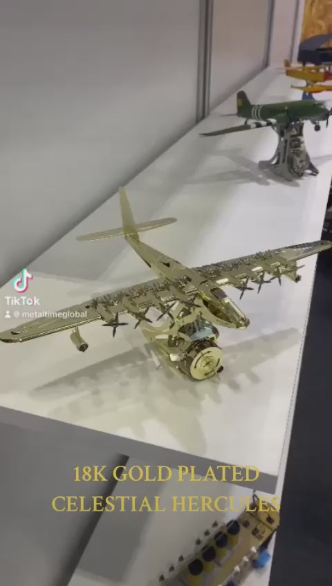 A Mechanical Marvel Inspired by the Legendary Spruce Goose. Metal Time, the epitome of precision engineering, is proud to introduce the Celestial Hercules – a self-assembly model paying homage to the iconic Hughes H-4 Hercules, commonly known as the Spruce Goose. Crafted entirely from polished stainless steel, this mechanical masterpiece captures the essence of the legendary aircraft's remarkable history and unique features.