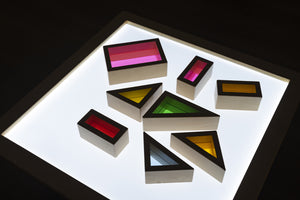 A light box is a great learning tool for children and it offers a great base for a sensory play activity. Itstimulates and engages the senses, promoting sensory exploration, creativity, and learning.It comes with different colour lights inside and with the remote control You can change the colour of the light.