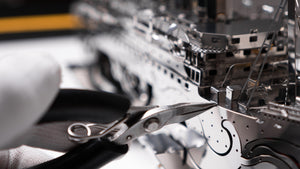 Cutting the set precisely does away with the likelihood of cuts in the event of assembling. The parts closely fit into each other and will not lead to joint problems. The brushed metal's pleasant tactile impressions, durability, and aesthetics differentiate steel parts constructively from plastic or wooden ones used in other constructors.