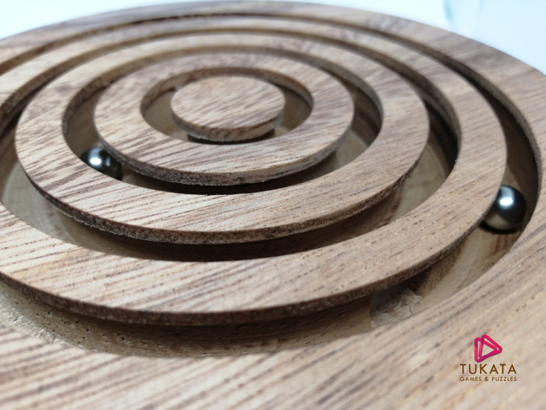 This wooden marble circular maze is awesome and addictive fun! Perfect for children, the objective of this puzzle is to move the three metal balls through the four concentric circles of the maze to the center. Since the metal balls cannot escape this maze, as built in for safety-this is a great puzzle to take on the road or toss in your bag for a quick, intellectually stimulating distraction!