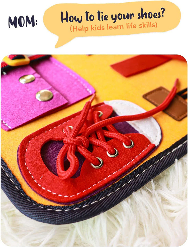 Enhance your child's fine motor skills and cognitive development with this Montessori Busy Board. Designed for toddlers and young children, this interactive educational toy features a variety of sensory activities, including buttons, zippers, buckles, and laces. Perfect for hands-on learning and keeping your child engaged at home or on the go.