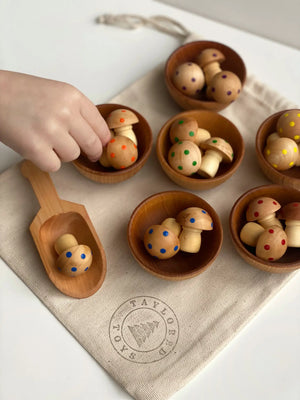 Montessori Waldorf Wood Mushroom Sorting Game