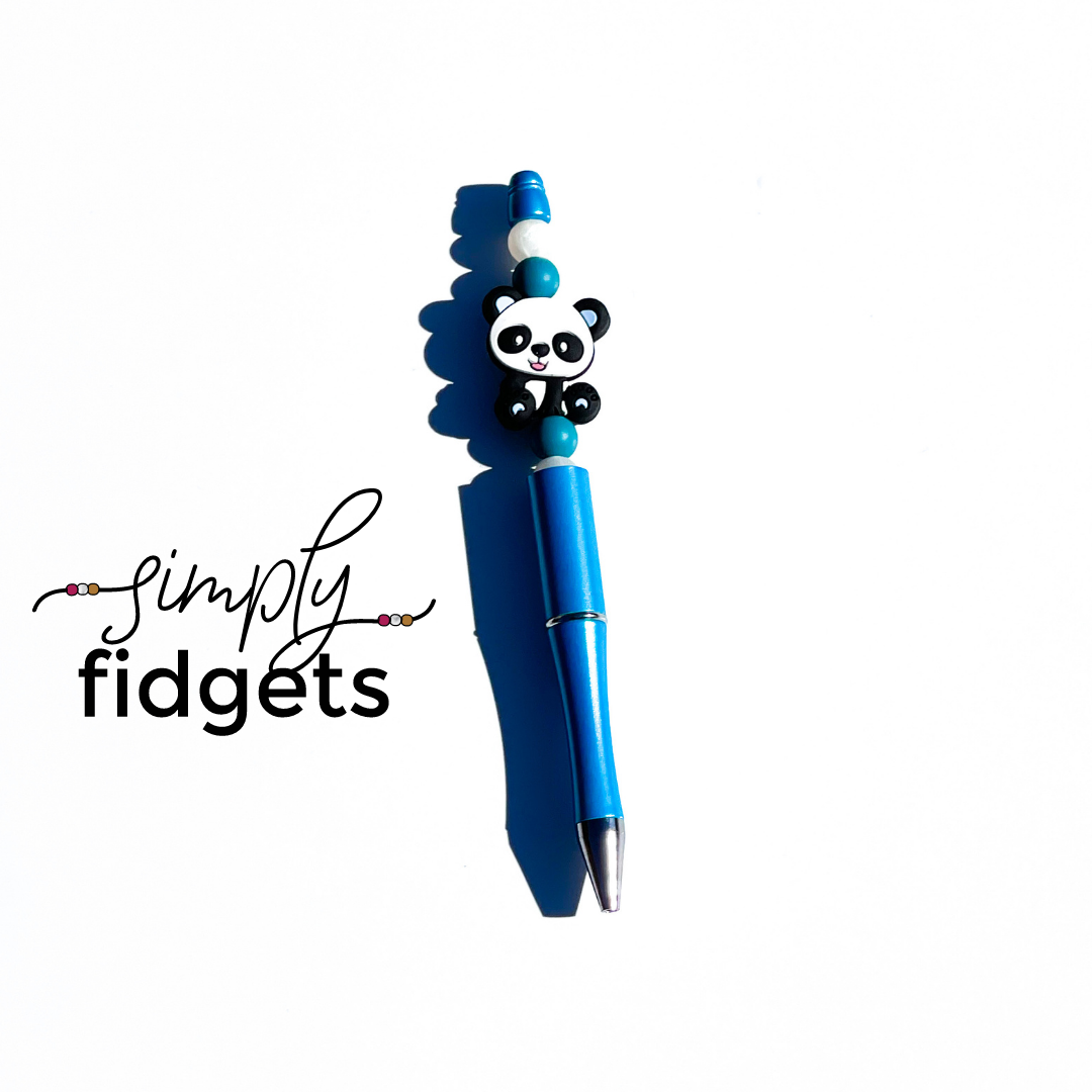 A beautiful electric blue pen accompanied by the cutest panda bear focal bead surrounded by blue and white pearl 12mm round beads, this pen is super cute and also very calming to look at. The blue hues and Posie Panda's smiling face will instantly relax you while you prepare to do paperwork or enjoy time with your journal.