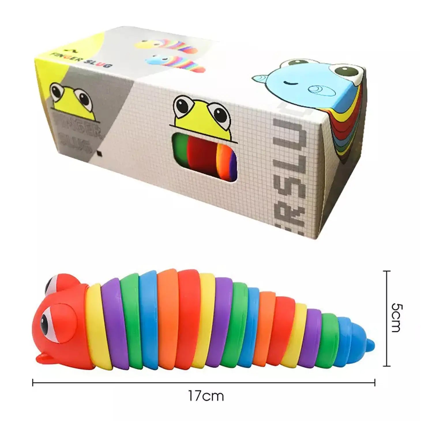 Unique Design: This toy features a unique slug shape and rainbow color scheme, with a fun eye design that adds to the playful nature of the toy.