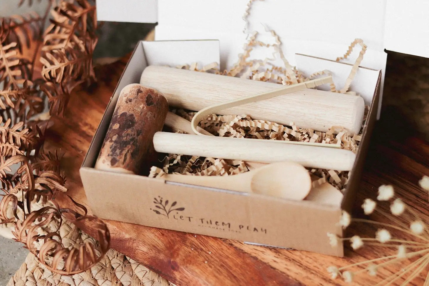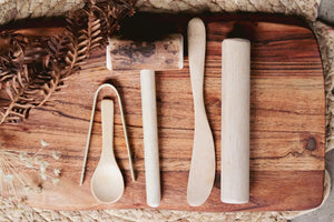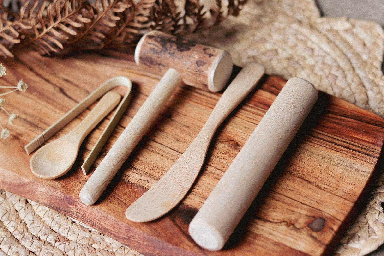 Wooden Play Dough Tool Set Nurture creative play & fine motor skills with natural, plastic-free wooden play dough tools! Kids can hammer, chop, roll & squish for eco-friendly fun & calming sensory play.
